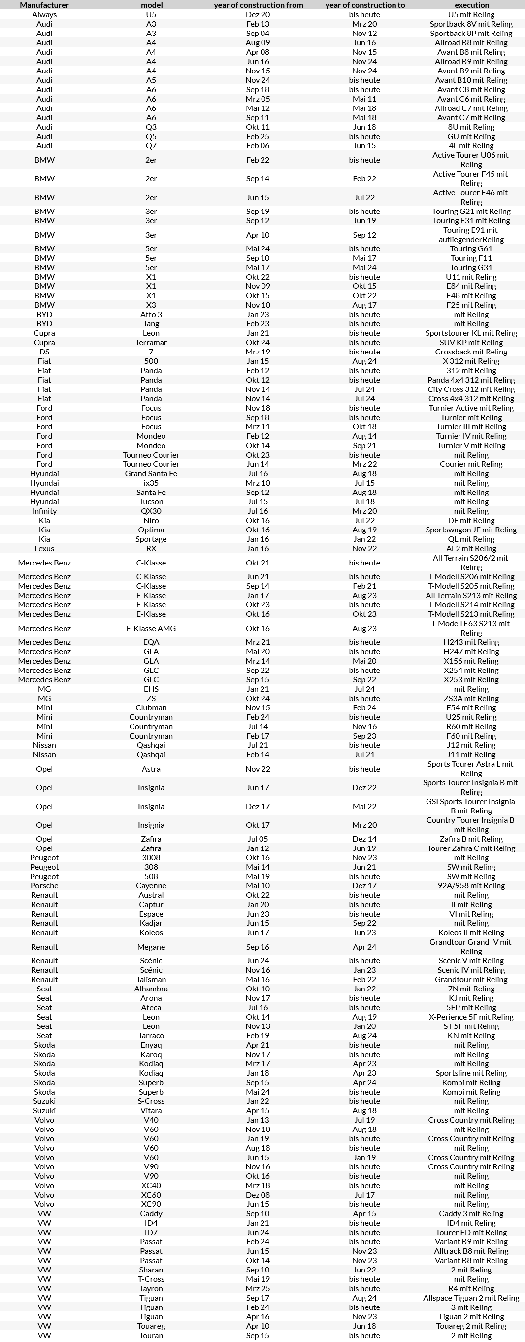 Kompatibilní vozy